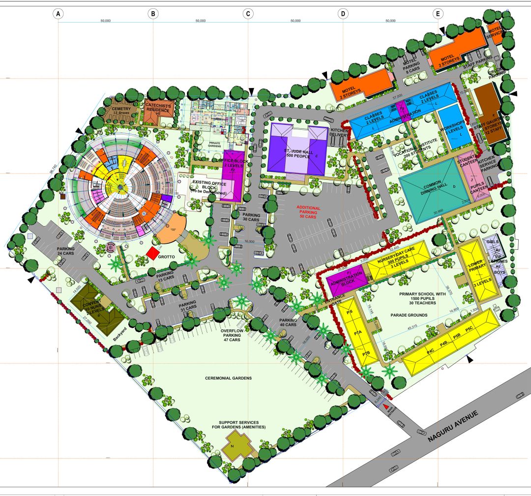 On one part, the Master plan had in it the redevelopment of the Church, St. Jude Primary and Nursery School, Naggulu Parish Hall, Parish & Administrative Offices, and the Priests’ house. On the other part, this plan proposed the establishment of a vocational school, a motel, a convent for the religious, and also the recreation gardens. Today, the church stands as number one in our priority list of development. The existing 65-year-old, in its current form, has structural faults, besides holding a leaking roof—despite the numerous interventions to fix it. In general, the condition of the church’s ceilings, windows, walls, sitting, aeration, décor, lighting, etc needs improvements and modernizing.
